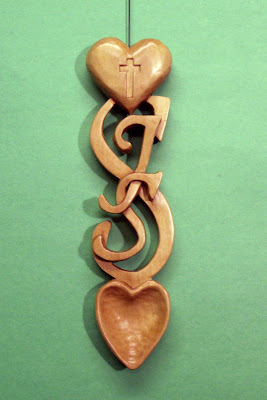 The initials and two hearts were trying to tell me that an "S" shape would work out pretty well.  I suddenly struck me that the couple's last name started with "S".  Well, that worked out nicely.  My first *three letter spoon*.