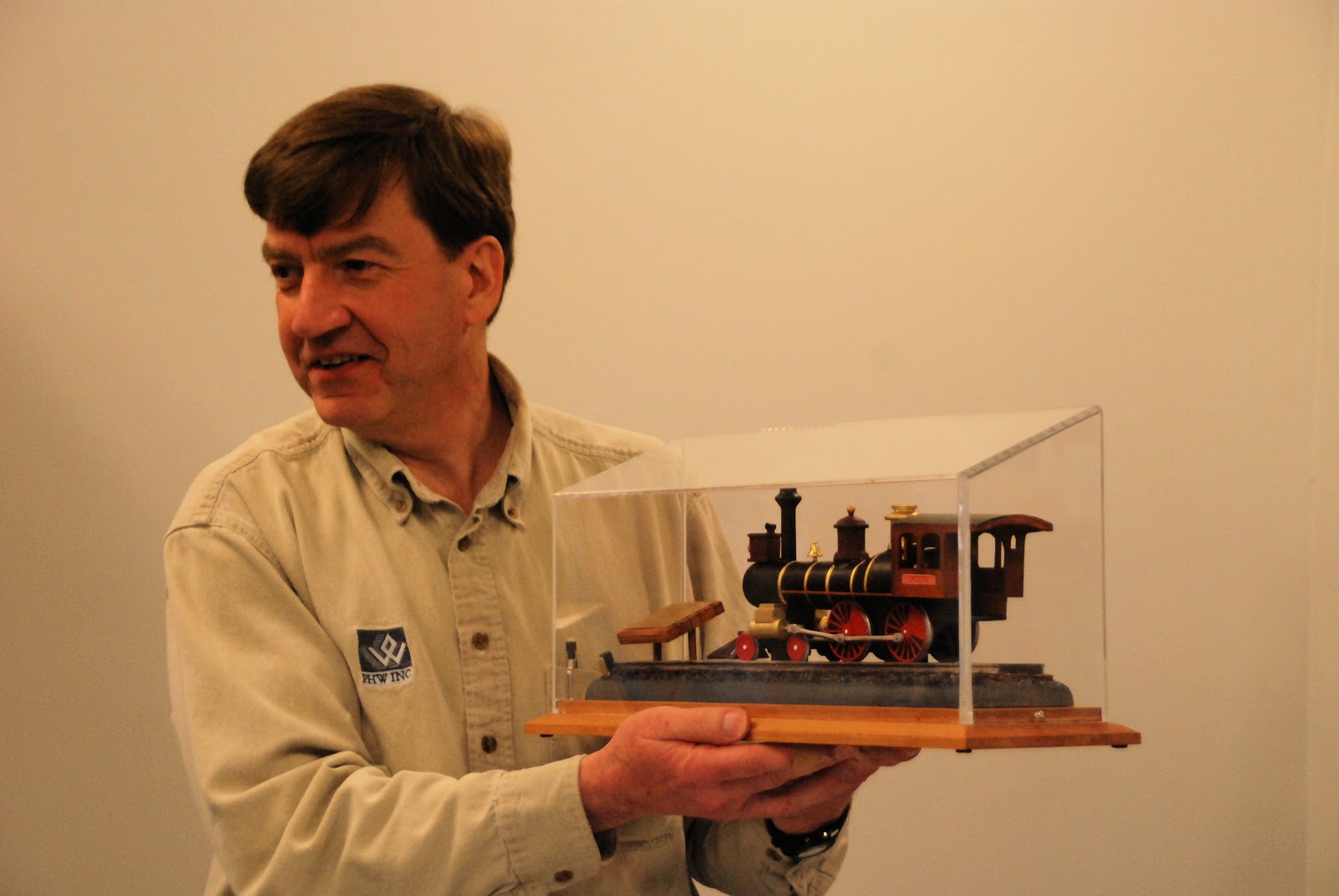 Another gentleman produced the beautiful, slope-top Plexiglas case and cherry wood base for this train as well as John's last year - Thanks, Ken.